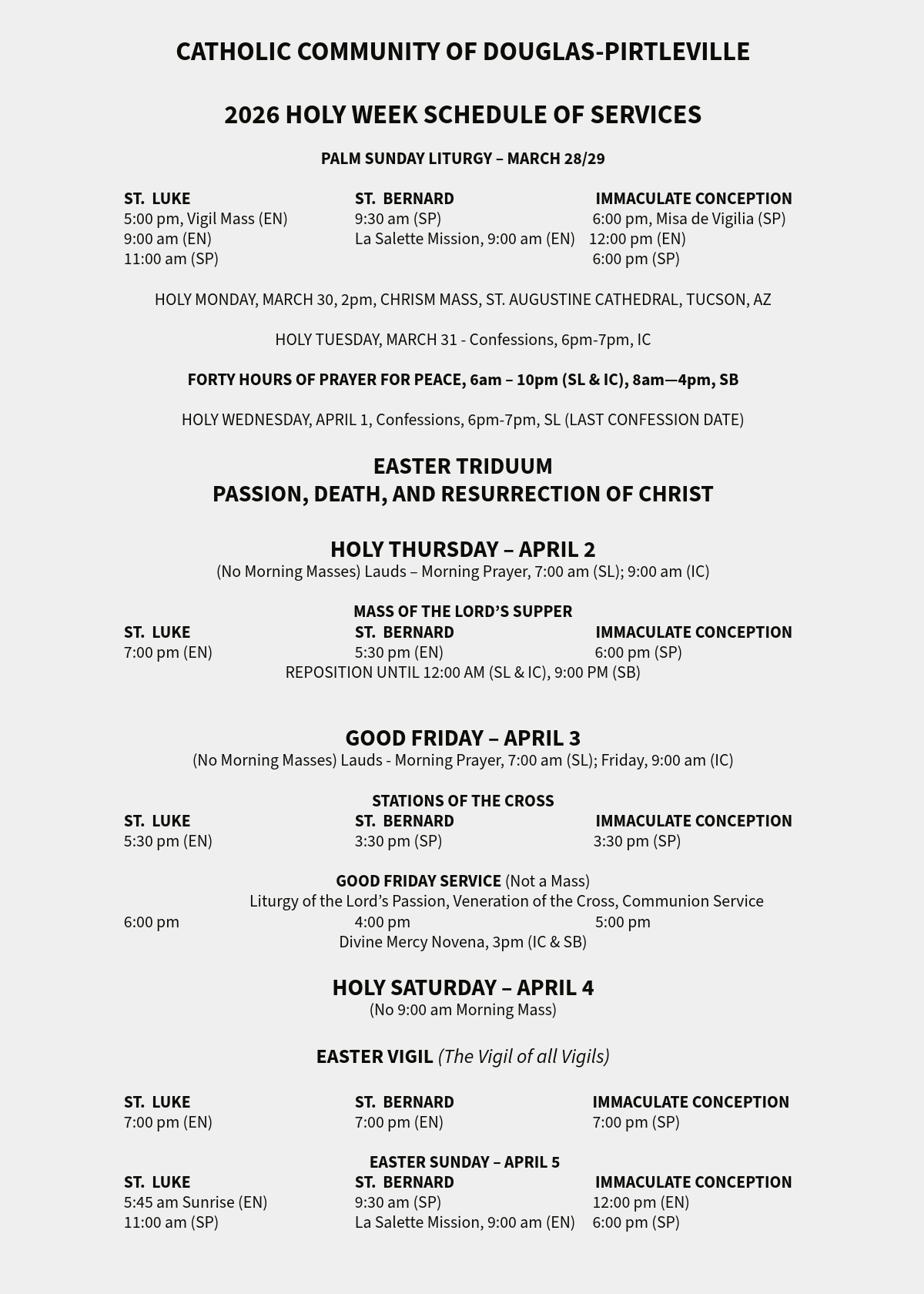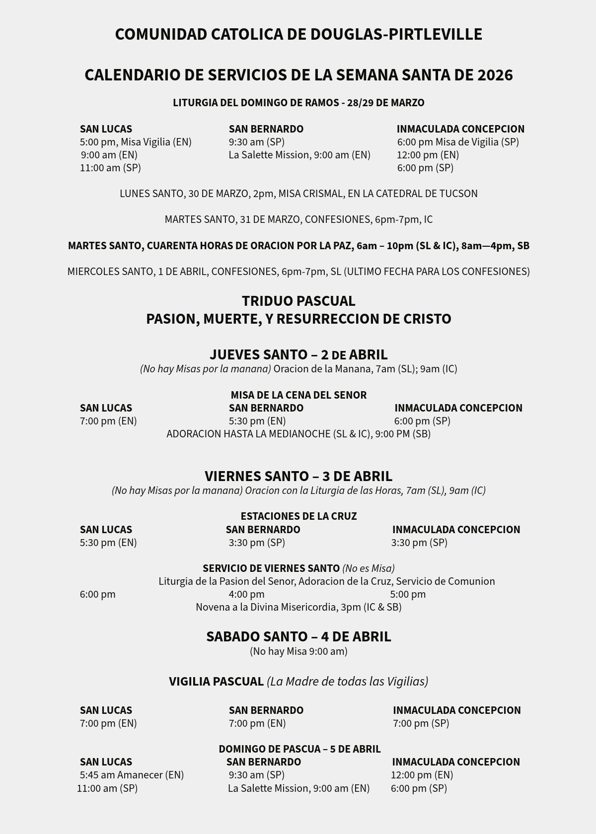 We, the Pastor and members of St. Luke, Immaculate Conception, St. Bernard and its mission in Douglas-Pirtleville, Arizona,